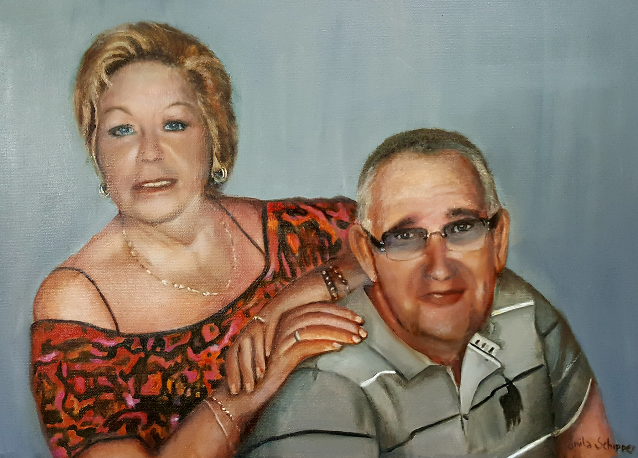 Dit schilderij gemaakt van de overleden ouders van mijn opdrachtgever.