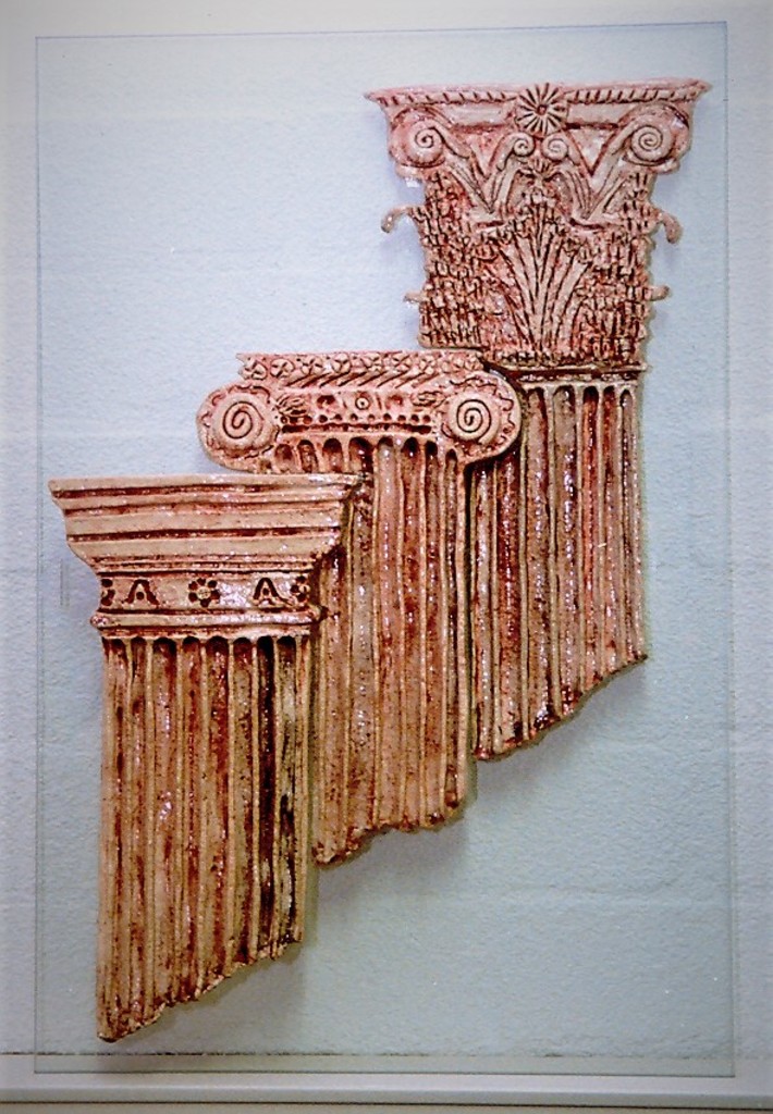 Klassieke zuilen, keramiek op glas, wandobject