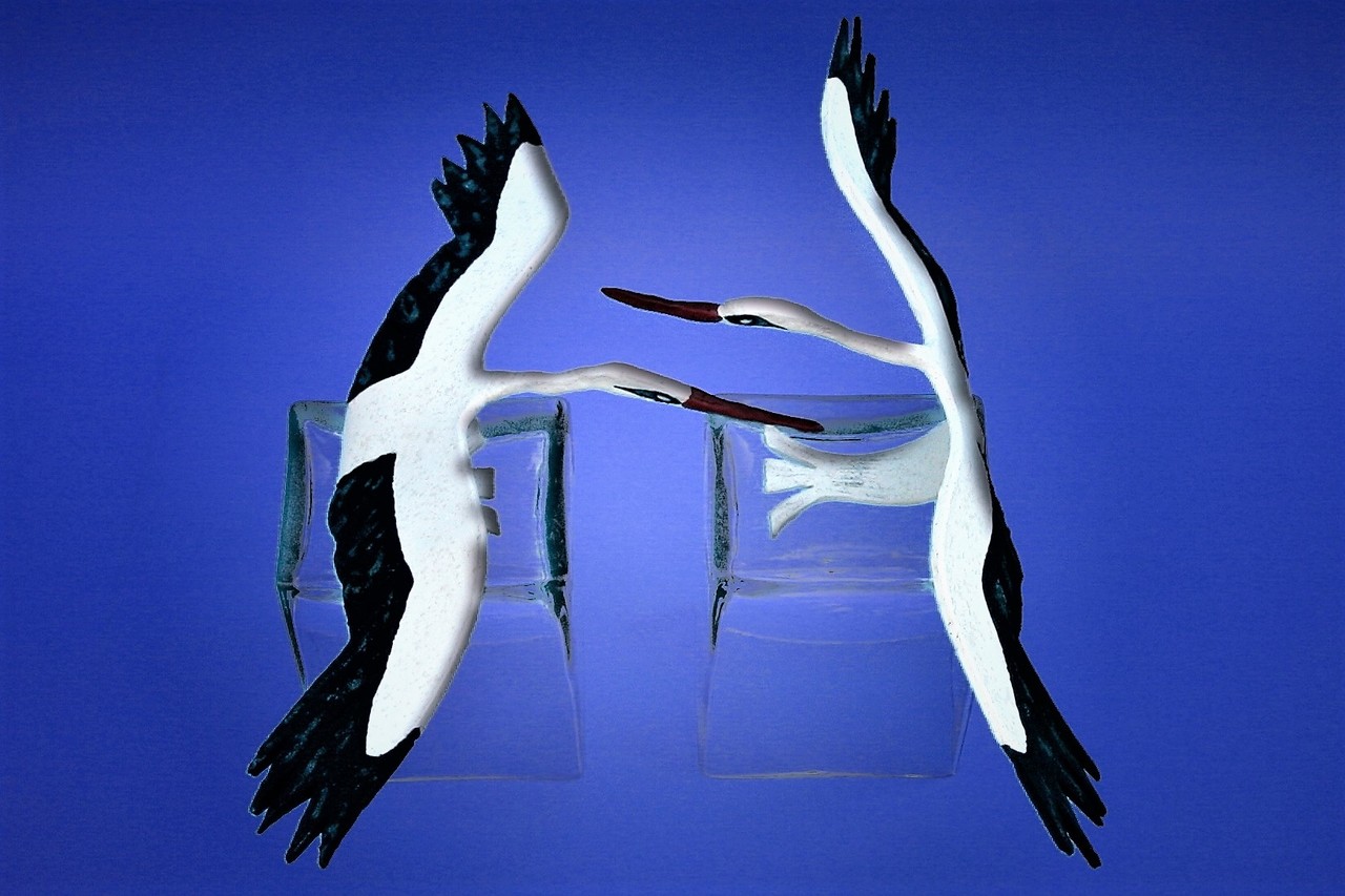Ooievaars, keramiek op glas