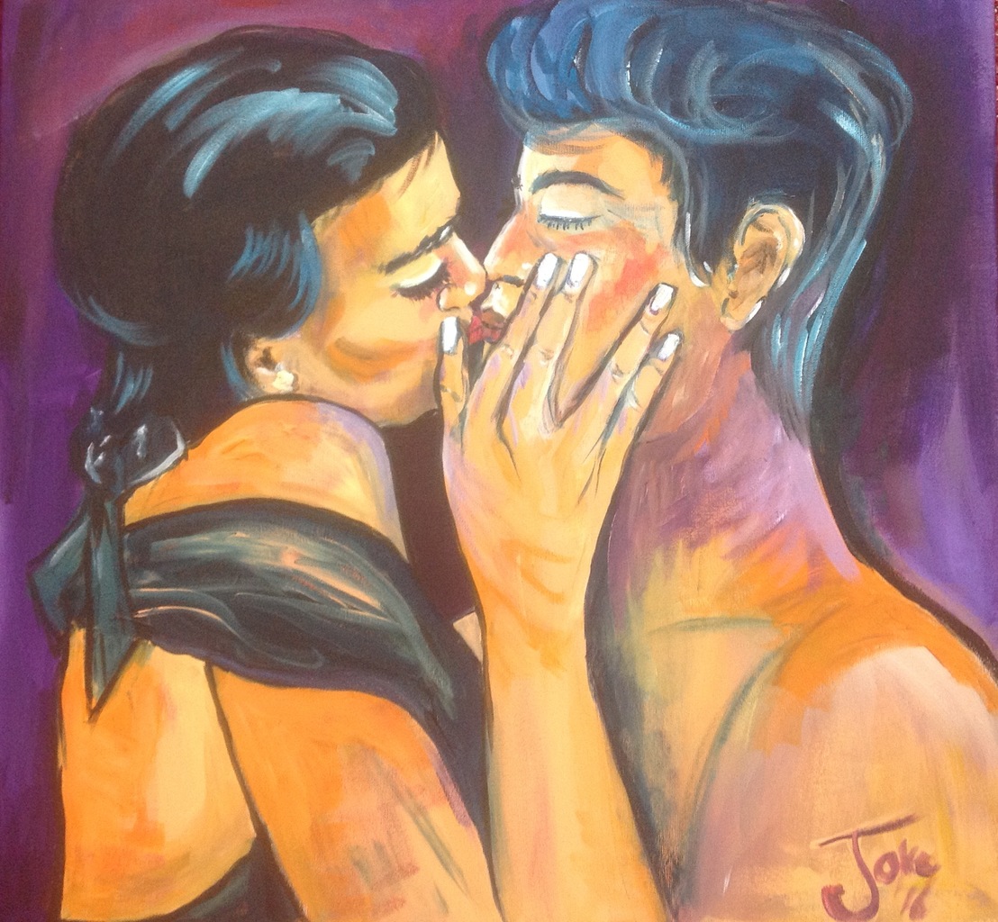 Kus Man Vrouw Paars Zwart Oranje Acryl Mond Liefde Love