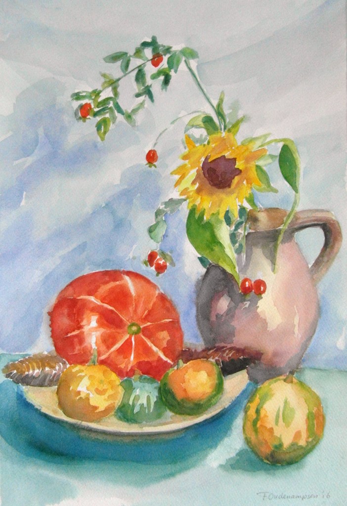 Atilleven Aquarel Pompoen Zonnebloem Oranje Geel