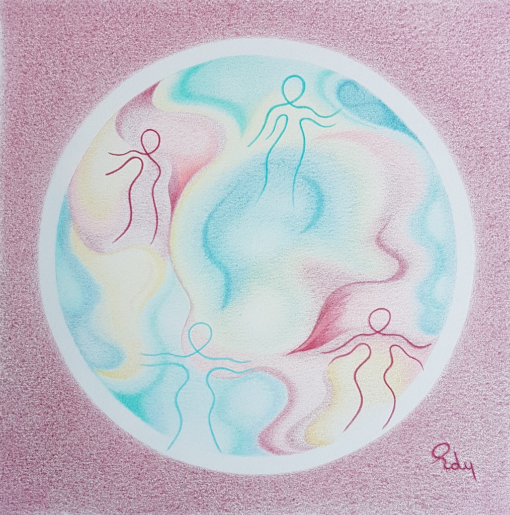 Edy combineert haar liefde voor kleuren en papier door blanco tekenvellen te vullen met in elkaar overvloeiende kleuren en mooie vormen. Vaak is een mandala de basis.