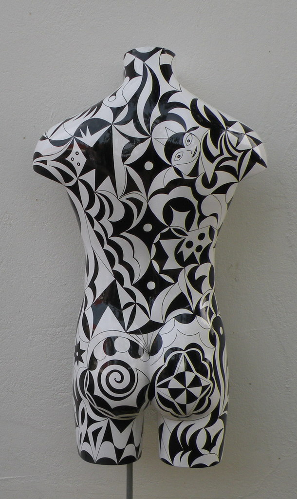 In zwart / wit beschilderde mannen torso.