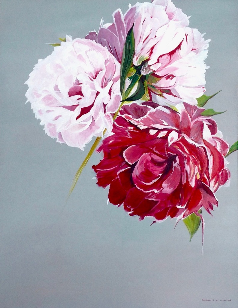 Wit Grijs Rood Groen Bloemen Roze Pioenen