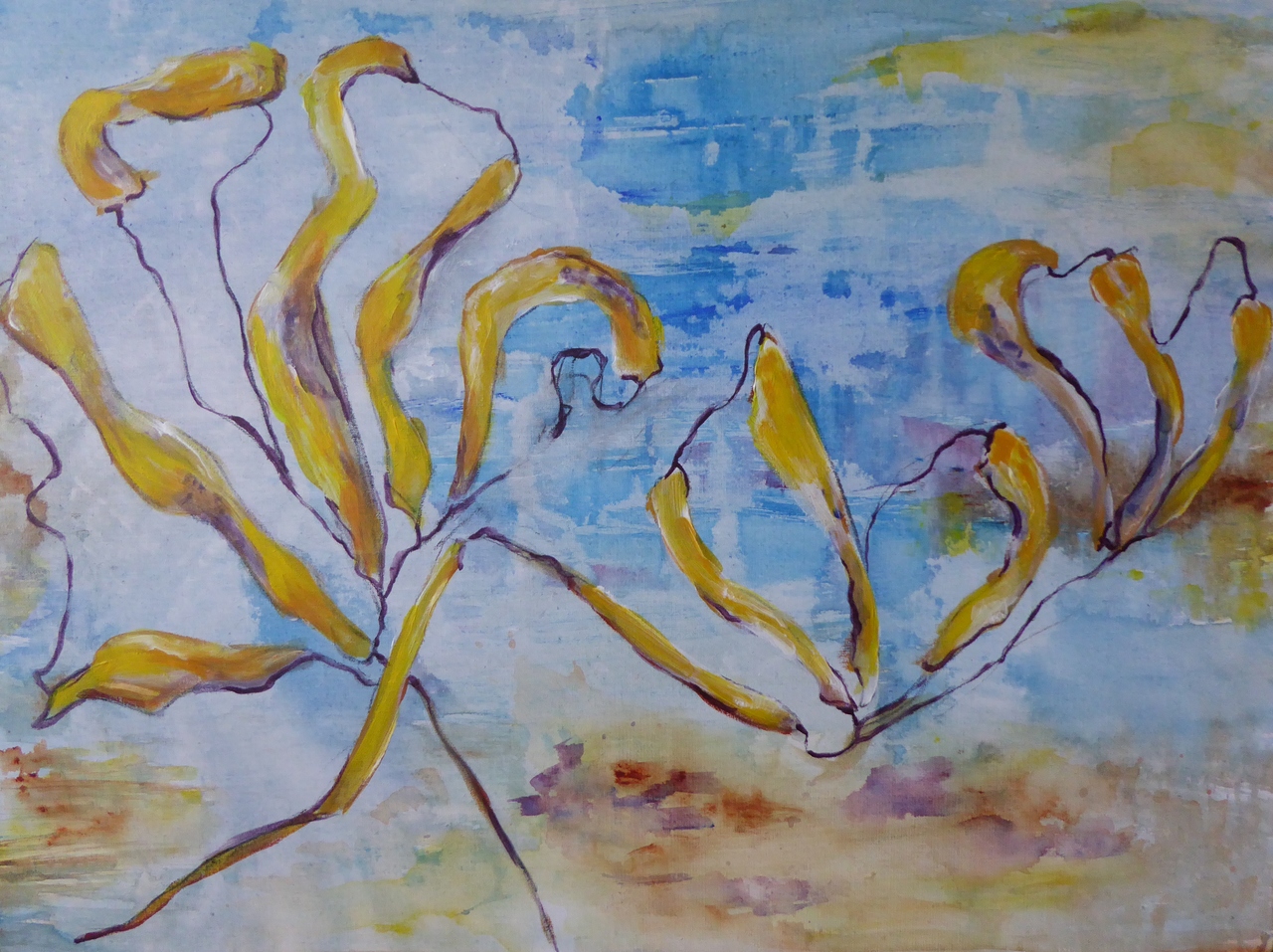 Een abstracte weergave van zwevend materiaal in een zee-omgeving. Inspiratie zijn de eiwitten, die zich in een cel bevinden.