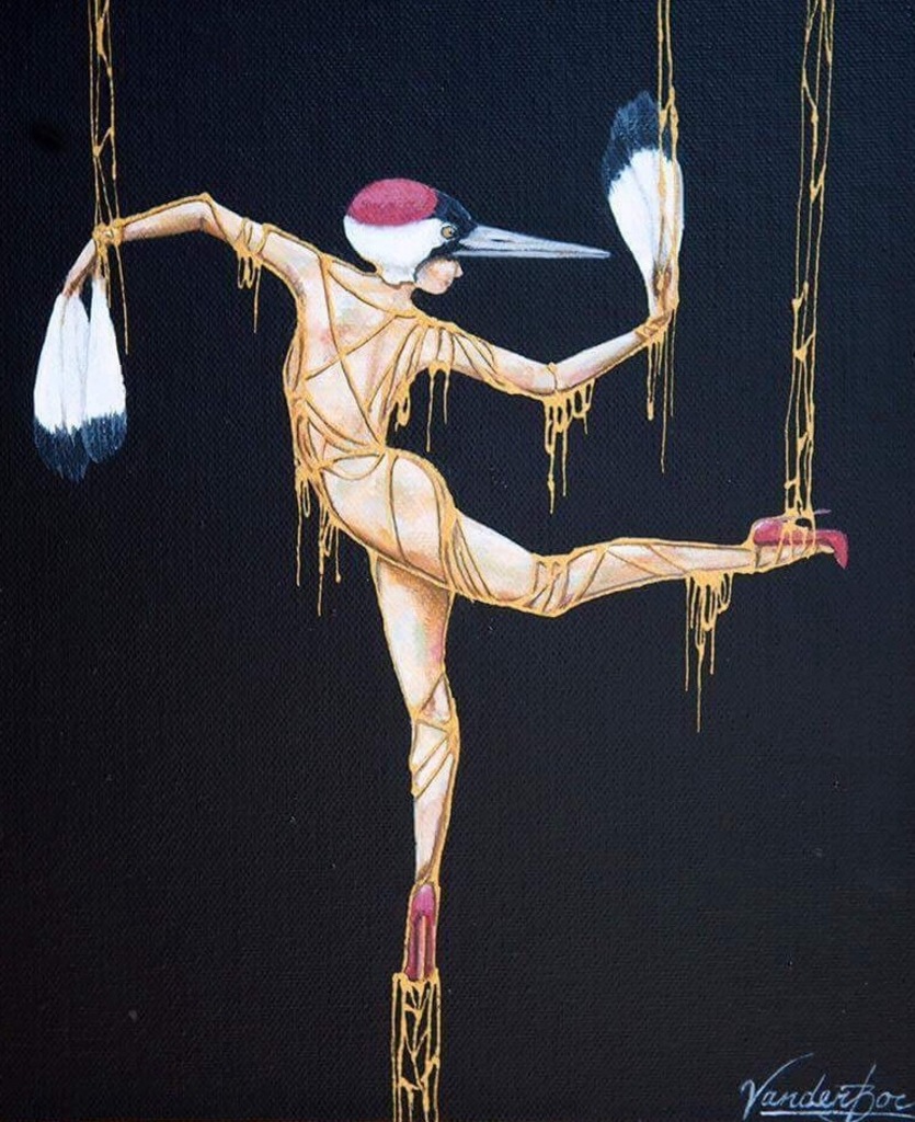 Gold Goud Klein Naakt Surrealistisch Black Surrealisme Pop Japanse Golden Surrealism Kraanvogel Crane Gouddraad Birdwoman Vogelvrouw