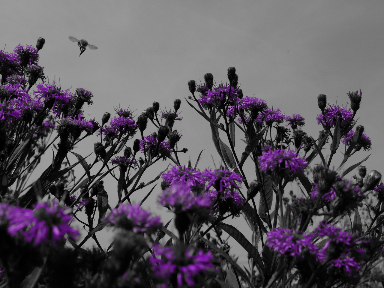 Een bij op zoek naar nectar en stuifmeel in de kleurenpracht van bloemen.
