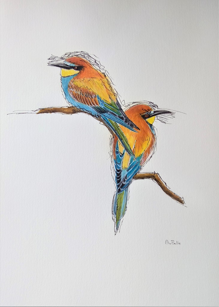 Vogel Aquarel Bird Bee Eater Bijeneters