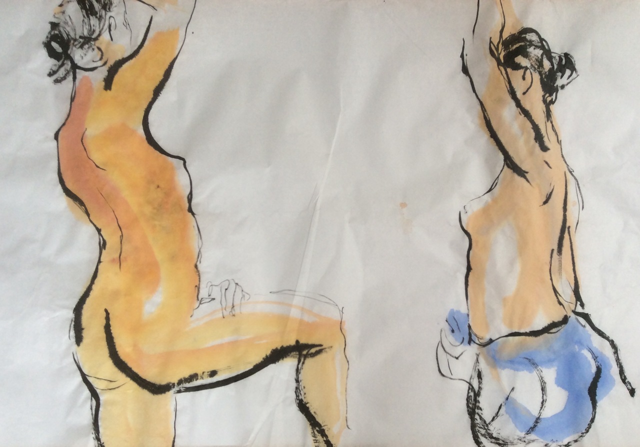 Naaktmodel in aquarel en inkt.