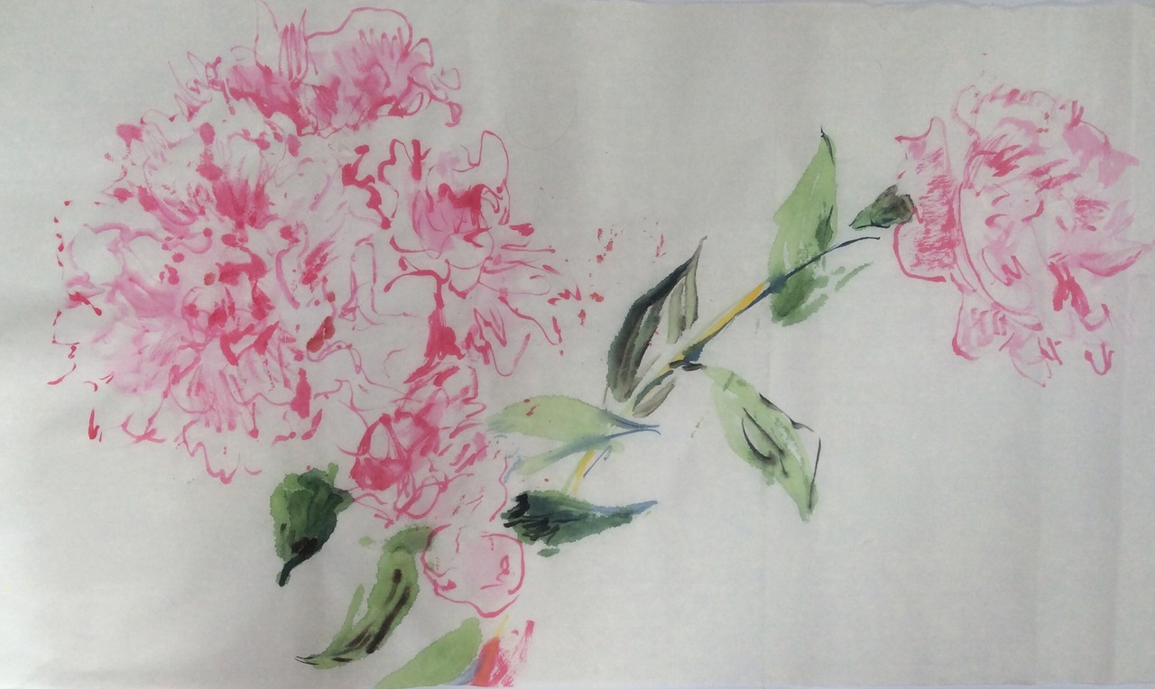 Pioenroos in aquarelverf en inkt op Japans papier.