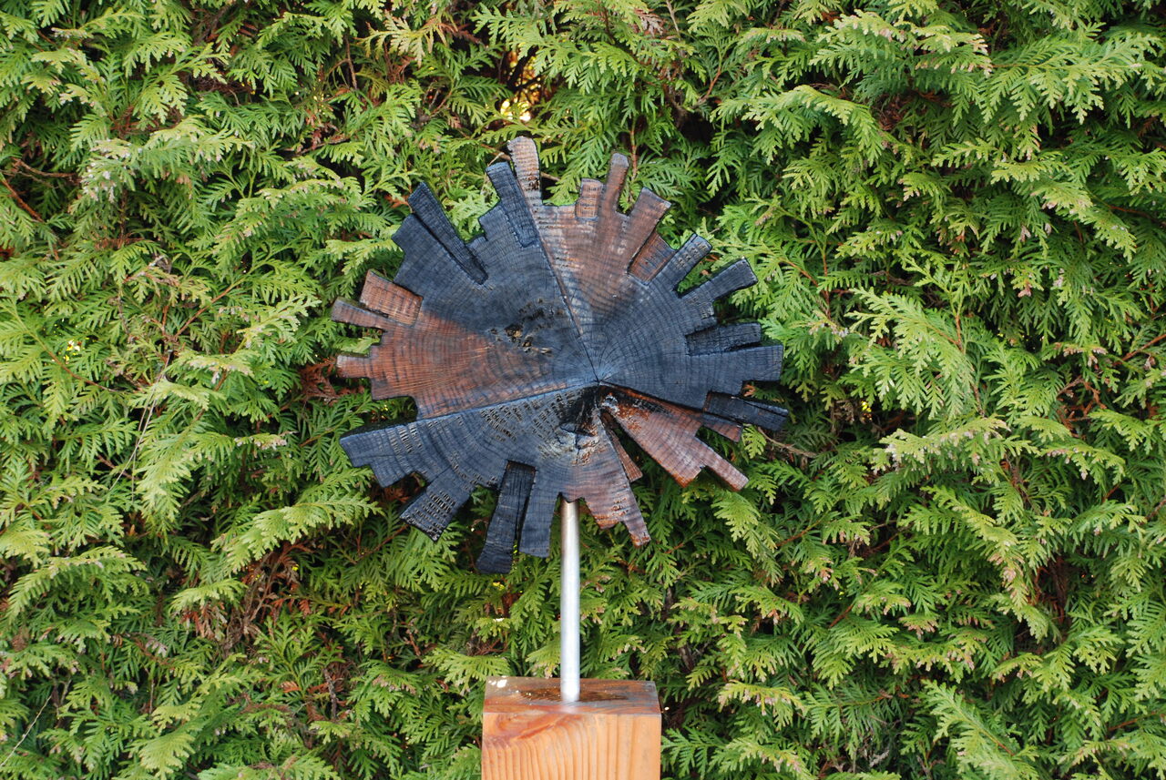 Eikenhout. Gedeeltelijk gebrand. Afgewerkt met perkoleum