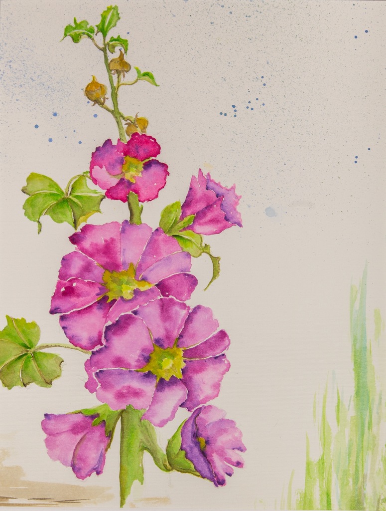 Groen Bloemen Aquarel Realistisch Roze Stokroos