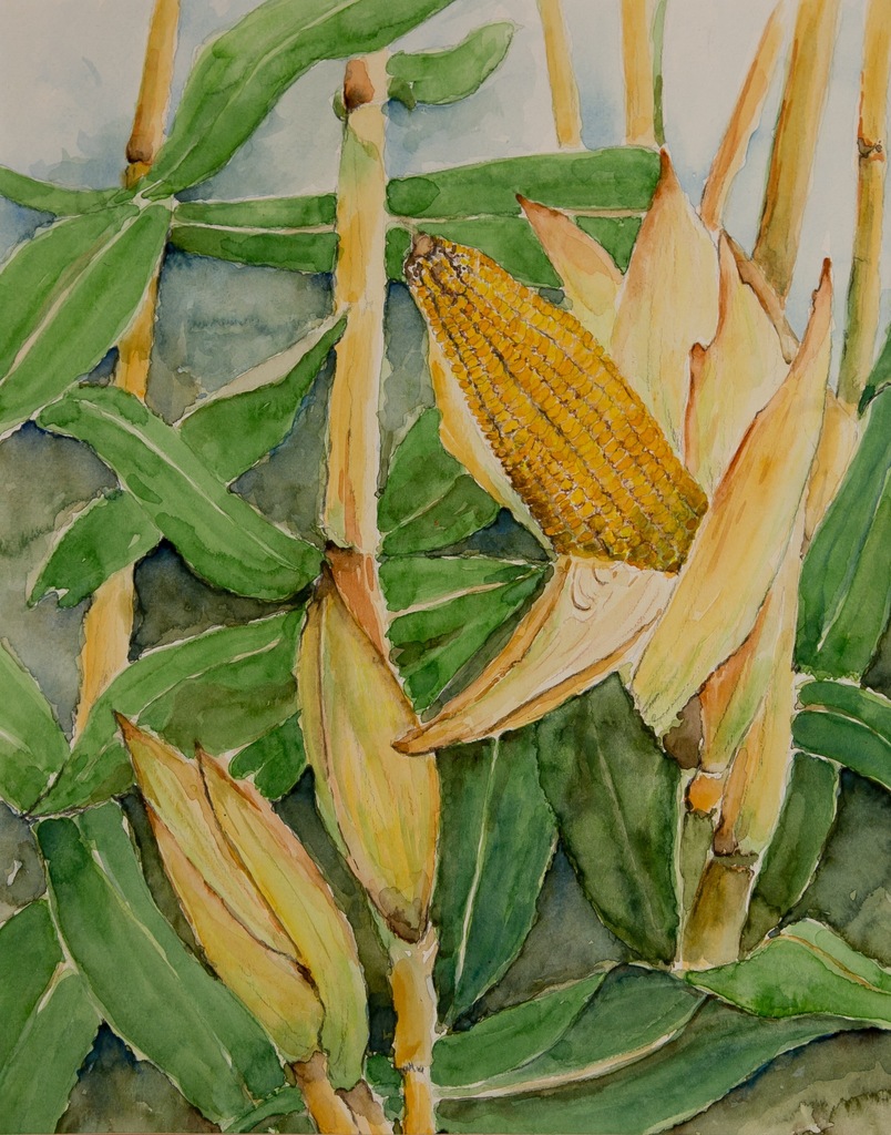 Geel Groen Aquarel Realistisch Beige Maïs Korrels Kolven Graansoort