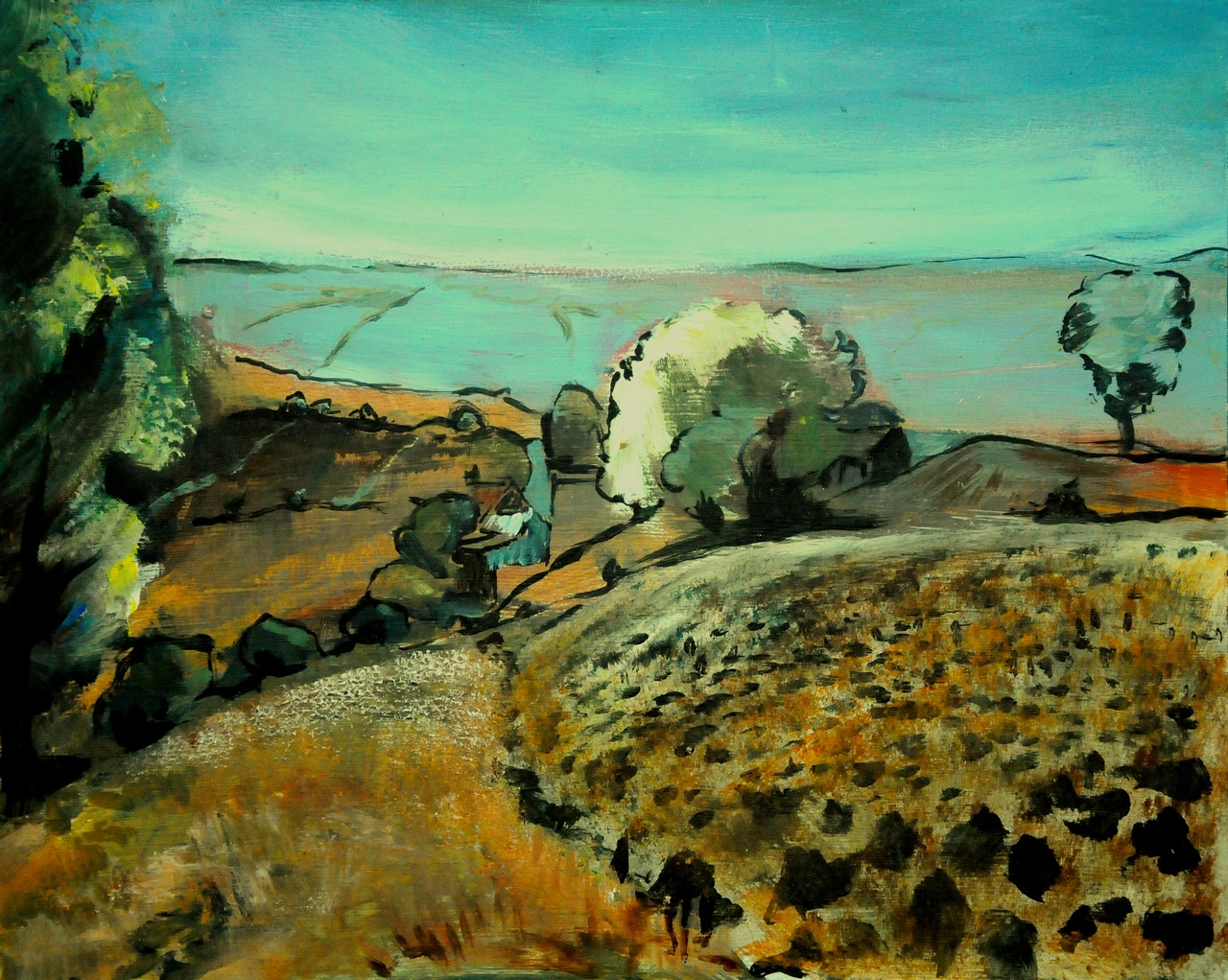 Cornelis of Kees Hoeve is mijn naam. Geboren in Amsterdam, al weer een hele tijd geleden. Vanuit mijn werkruimte heb ik uitzicht op het weiland, een grote leegte met schapen. Ik maak graag gebruik van acryl-, wat in mijn beleving prettig snel droog is, of olieverf waar lang mee kan worden doorgewerkt.