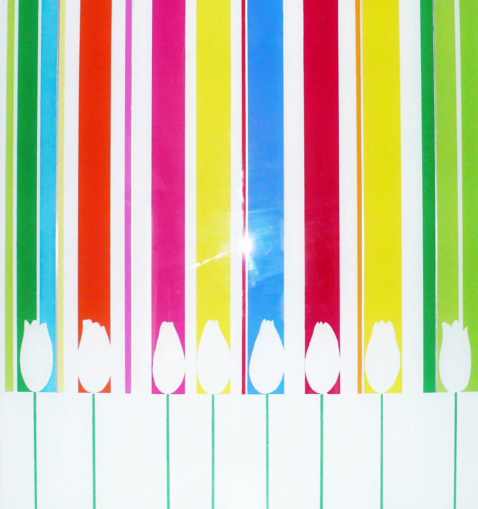 Idee van een bollenveld op decoratieve wijze weergegeven op een glasplaat.