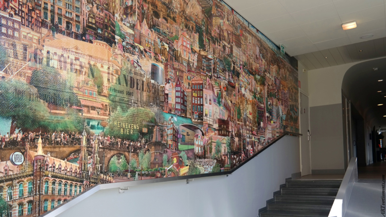 digitale collage over Amsterdam; heden en verleden, cliché en niet cliché. In combinatie met QR codes en lokale wetenswaardigheden. Geplaatst in Ibis hotel Amsterdam
