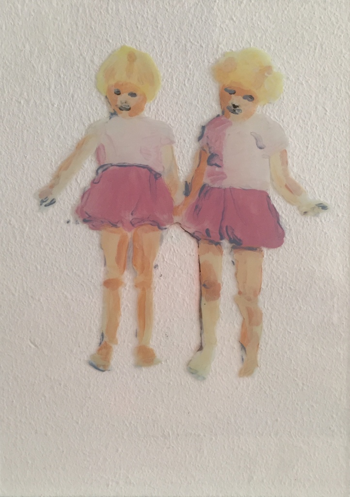 Tweeling op glas geschilderd