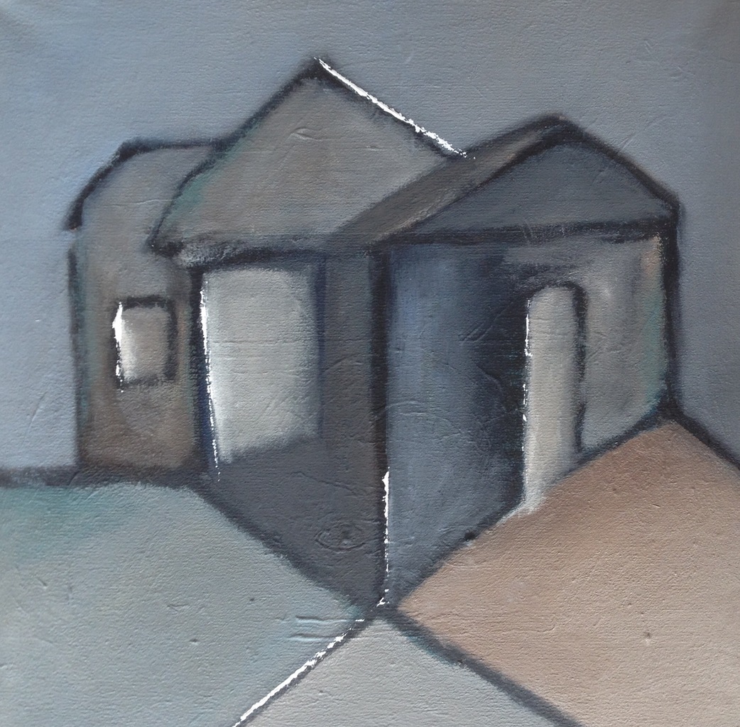 Blauw Blue Oil Canvas Olie Huizen Houses Minimal Minimalism Azul