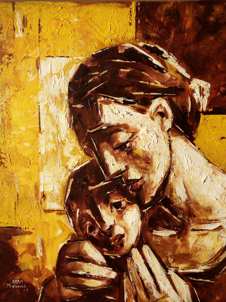 Mouafk Khzaal {1966} komt uit Syrië. Hij is zowel kunstenaar als tandarts. Zijn eerste solo tentoonstellingen vonden plaats in 2010 in Homs en Damascus en in 2014 in Libanon. In 2017 en 2018 in Huis Kernhem in Ede. In 2018 in Casteelse Poort museum in Wageningen.