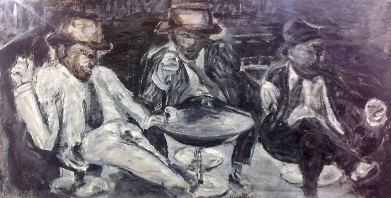 VERKOCHT Drie engelbewaarders in een bar, wachtend op een job. Komt er iemand binnen ?