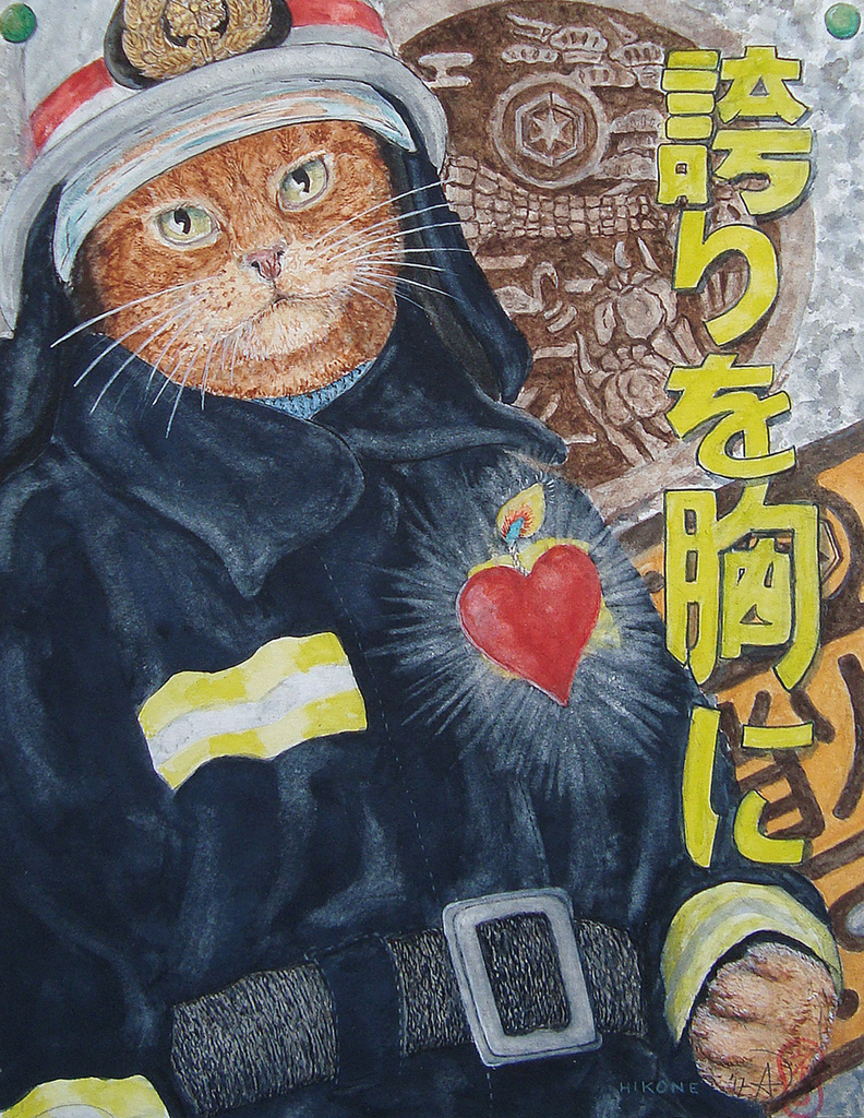 Brandweer Putdeksels Kat Japan Hart Aquarel Watercolor Heart Manhole Cover Firefighter Cat