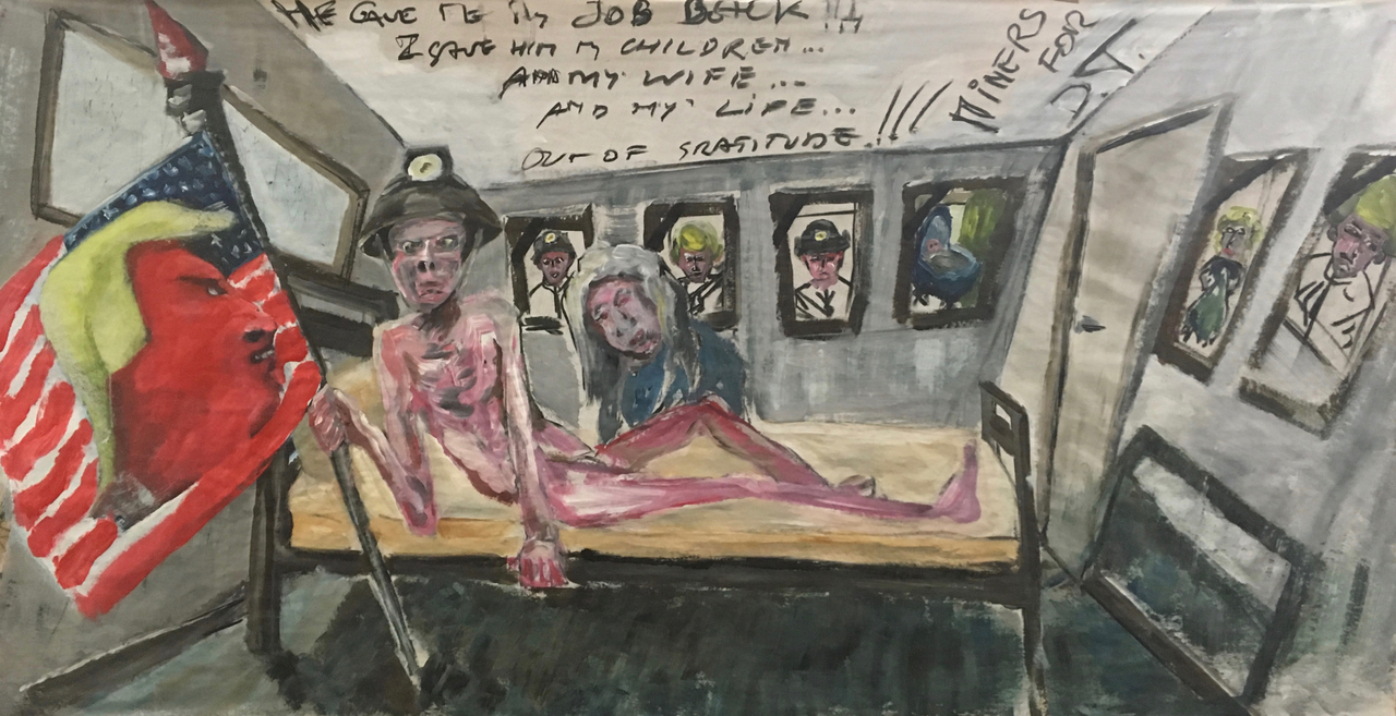 Ondanks het verlies van al zijn zonen en dochters (door de Trumpiaanse oorlogen en stoflong), brengt de stervende mijnwerker een ode aan zijn jobredder.