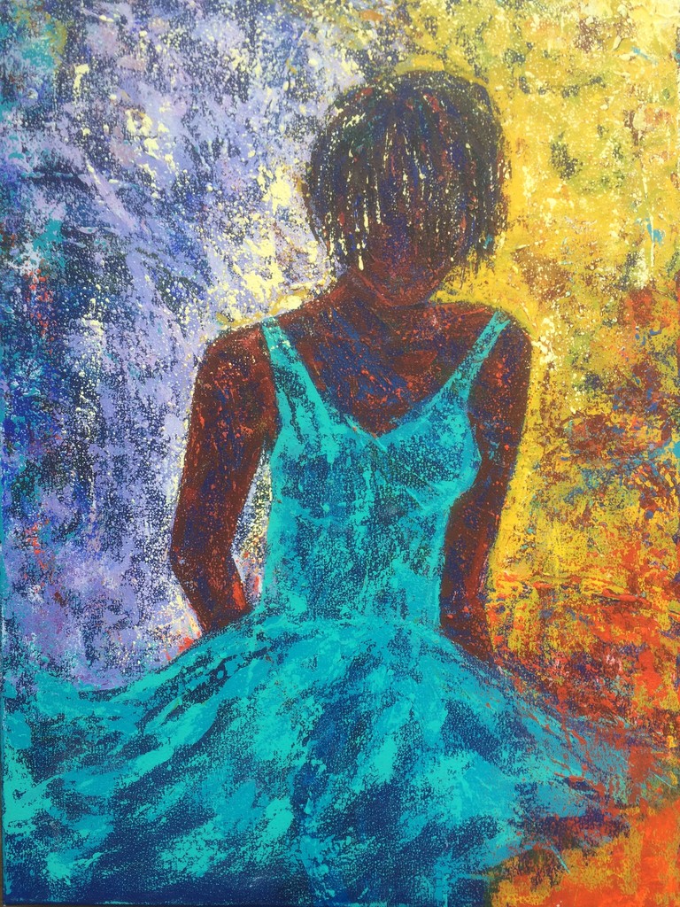 Schilderen met acryl en paletmes. Meeste schilderijen ontstaan vanuit innerlijk beeld, indruk of tekst.
