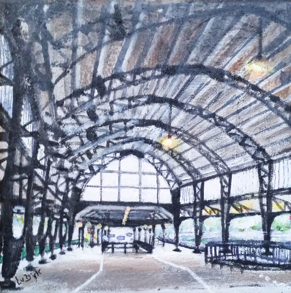 Iets in de buitenwereld intrigeert mij en door deze impressie uit te werken wordt zij blijvend deel van mijn binnenwereld. Laag na laag bouw ik aan de uiteindelijke vorm. Tijdens het werken komt er een stroom van associaties op gang. Het is een constant zoeken naar evenwicht tussen de verf en de andere materialen.
