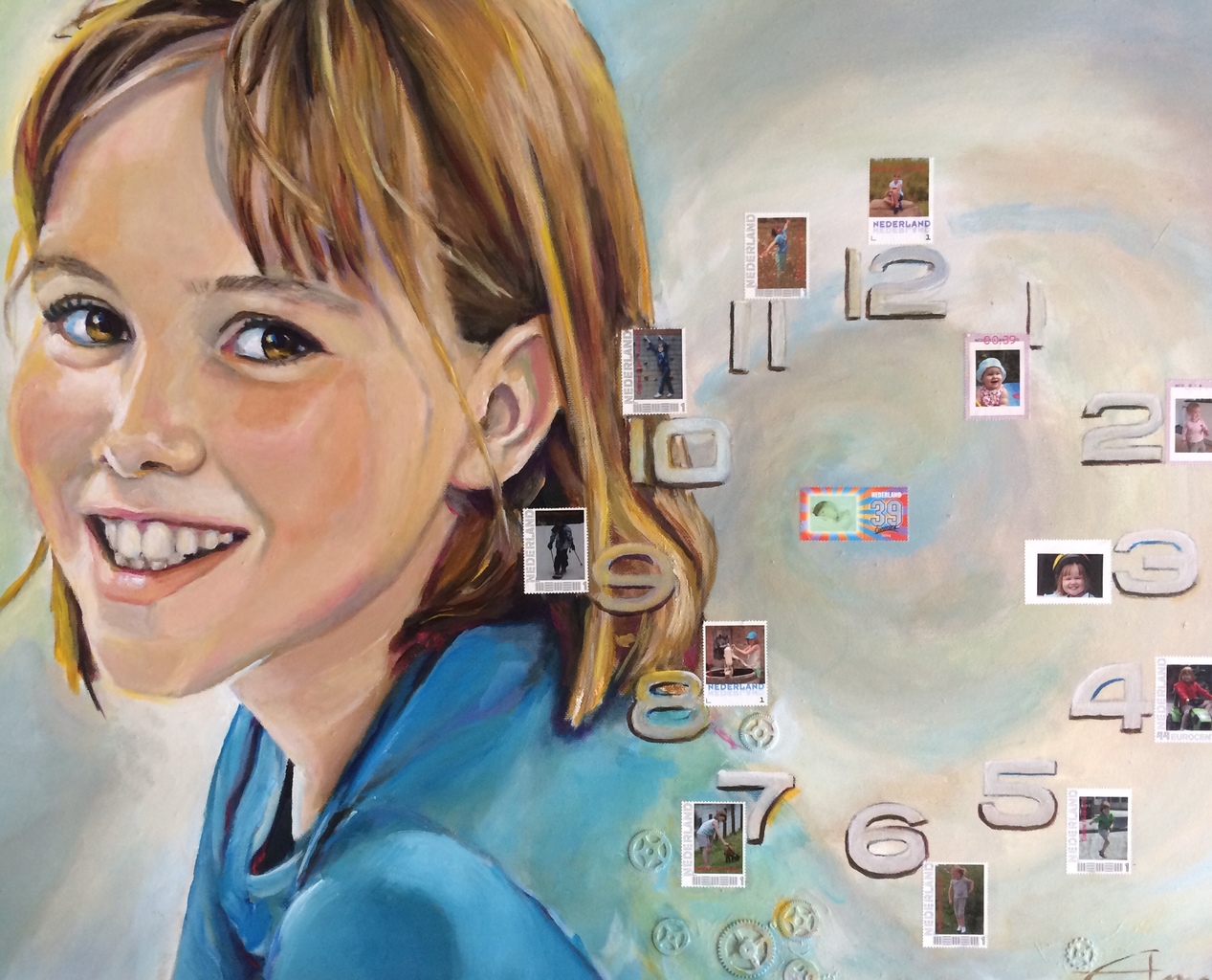 Meisje Portret Opdracht Postzegels Klokradertjes