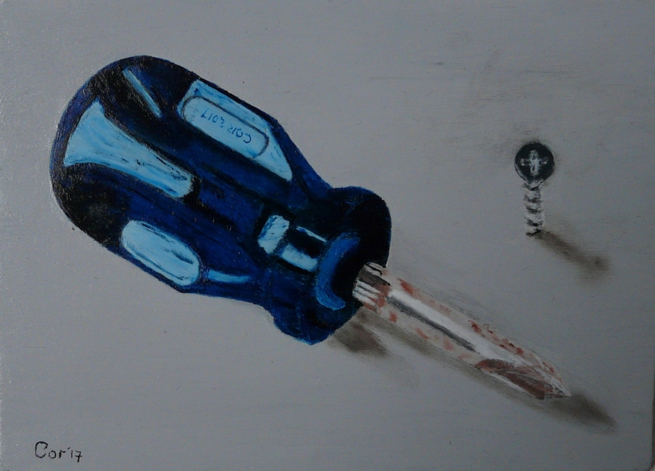 Kruiskopschroevendraaier Schroef Olieverf Realistisch Blauw Zilver Grijs Passe-partout Lijst