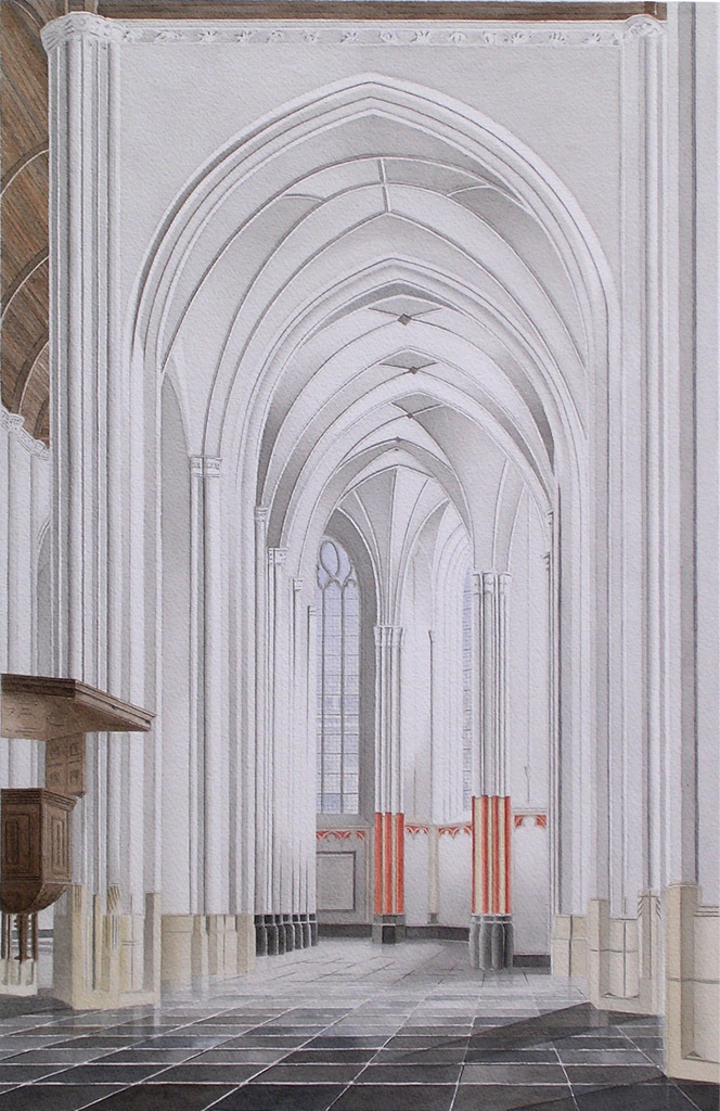 Gefascineerd van jongs af voor alles wat te maken heeft met oude kerkgebouwen. Spannende bouwwerken met vele fraaie hoekjes, doorkijkjes en als je geluk hebt een schitterend orgel met een goede organist die tijdens het tekenen musiceert.