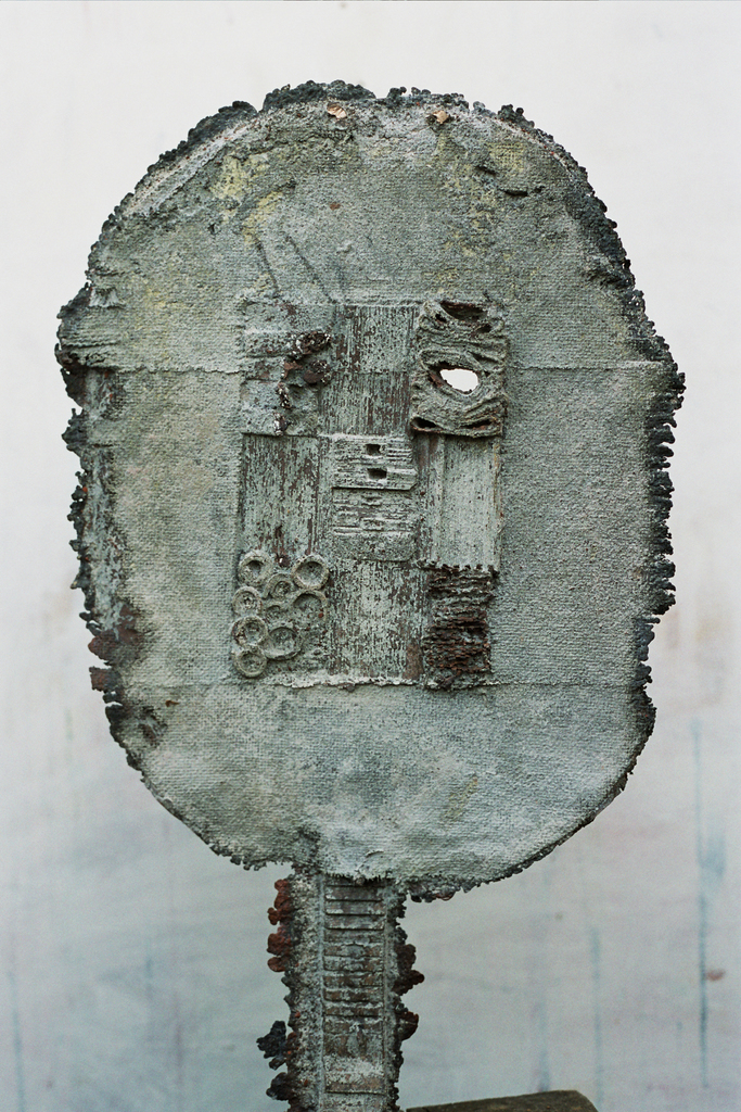 abstract bronzen beeld met een speciale giethuid die is ontstaan in de oven door de restproducten van het uistoken en tijdens het gieten