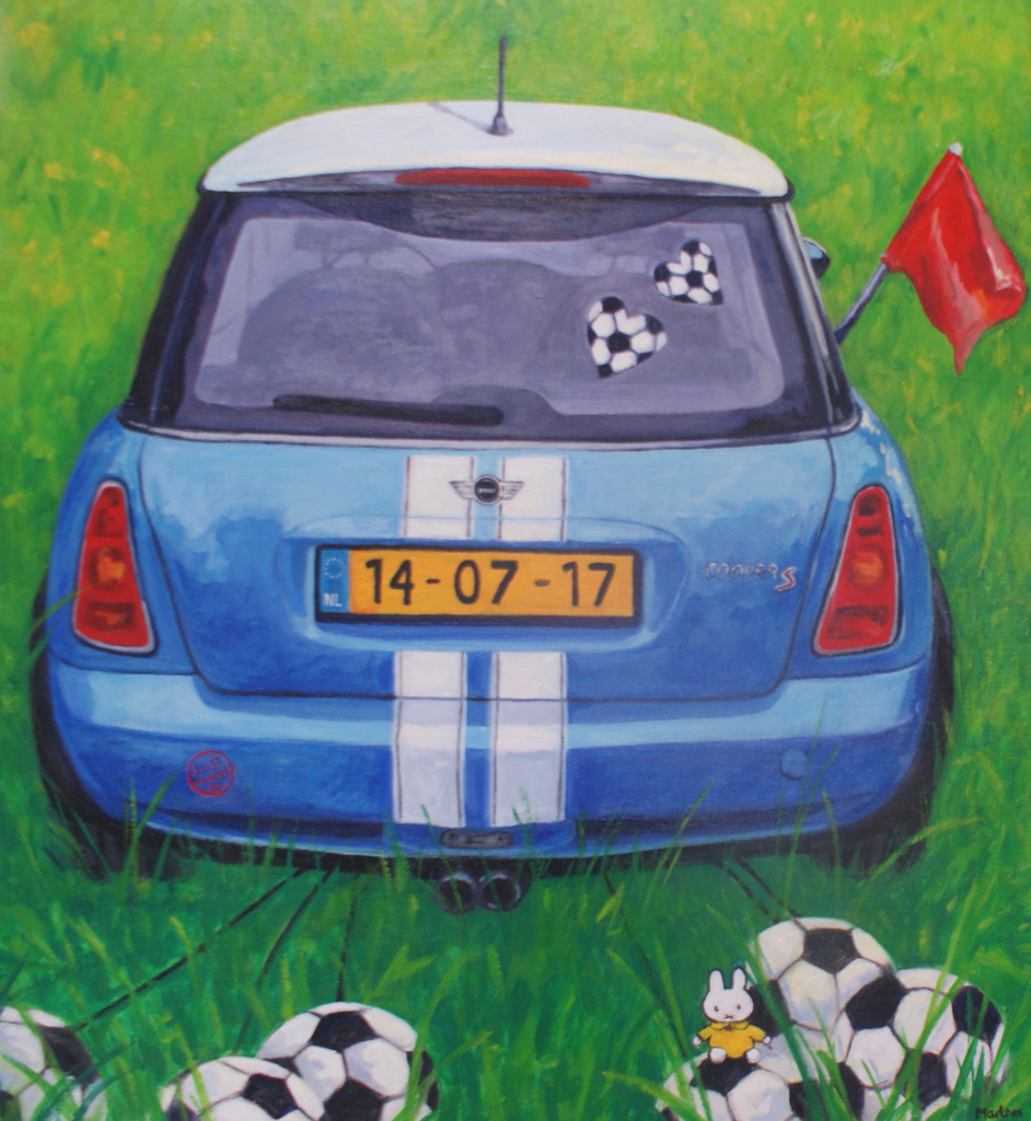 Painting Mini Auto Huwelijk Bruid Bruidegom Lijnen Voetbal Married Trouwen Ballonnen Getrouwd Just Bruidsauto