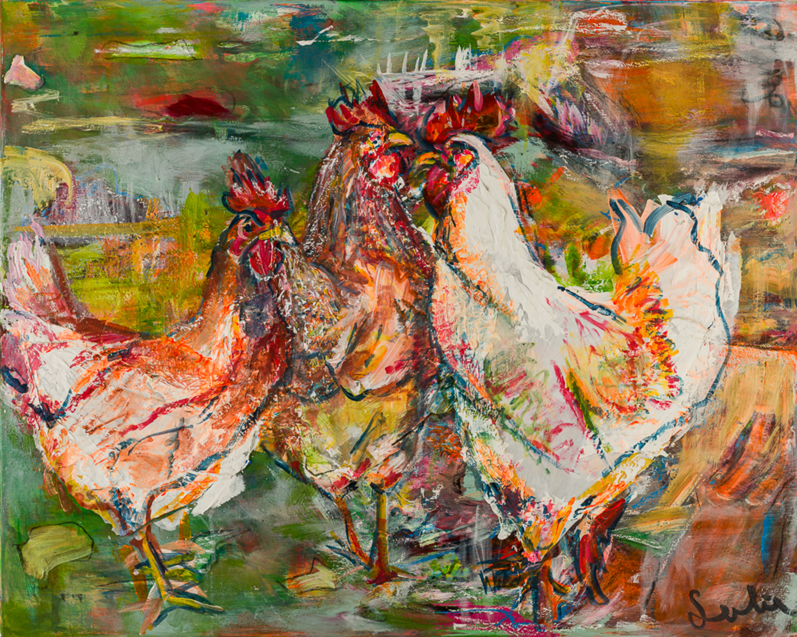 Mixed Media Restaurant Kleur Kip Kippen Haan Chicken Colour Peacock Haantjes Kippenschilderij