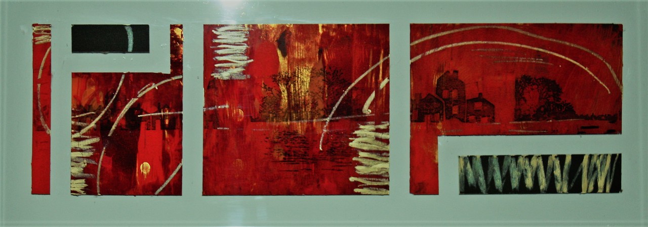 Altijd (voor mij) nieuwe manieren zoeken om mijn gevoelens, gedachten en emoties uit proberen te drukken. Oliekrijt, inkt en acryl op plexiglas. Doordat je aan de achterzijde van het plexiglas werkt, onwikkelt het schilderij zich in omgekeerde volgorde. De laag waar direct het zicht op valt wordt als eerste aangebracht, in tegenstelling tot een schilderij op doek. Daar is de laag waar het zicht op valt de laatst aangebrachte laag. Dat druist in tegen de gebruikelijke manier van werken. De transprantie van het plexiglas geeft een heel bijzonder effect. Bijzonder fraai professioneel ingelijst. Incl. lijst 86x36 cm.