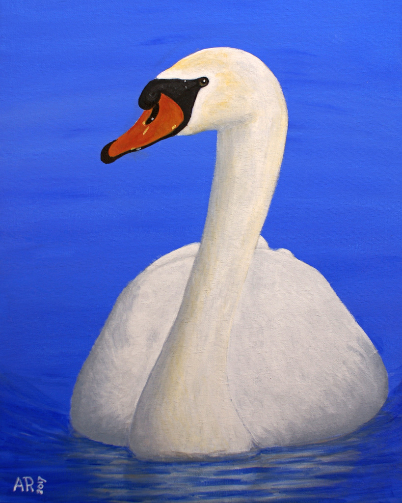 Schilderij Wit Blauw Acryl Vogel Dierenschilderij Painting Acrylic Bird Zwaan Swan Kunstkaart Vogelschilderij