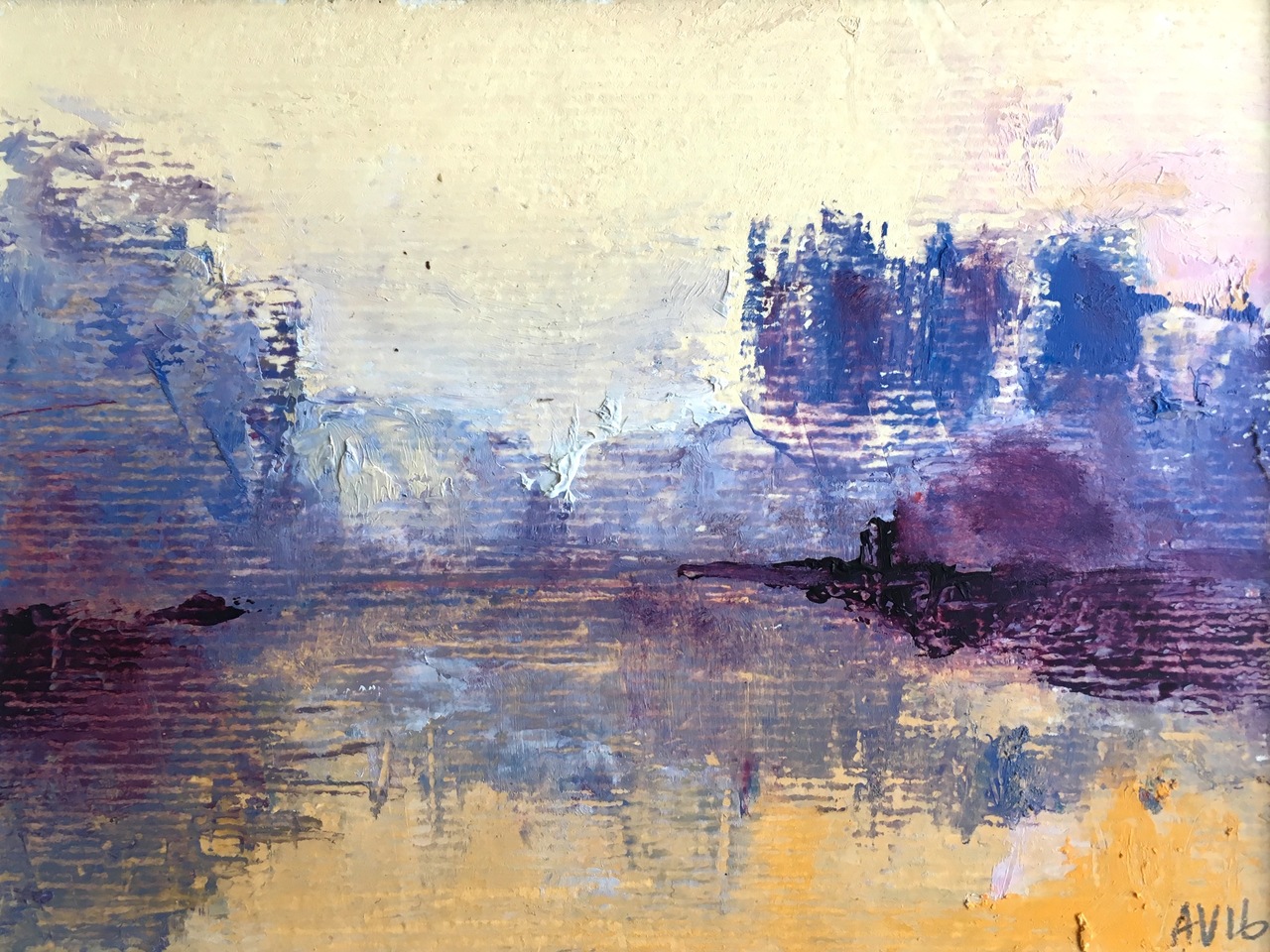 Geel Landschap Paars Papier Olieverf Rivier Studie