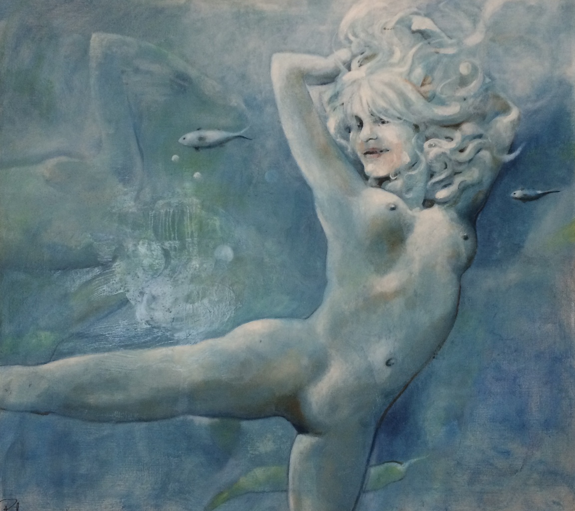 Wit Blauw Groen Vrouw Naakt Water Haar Sereen