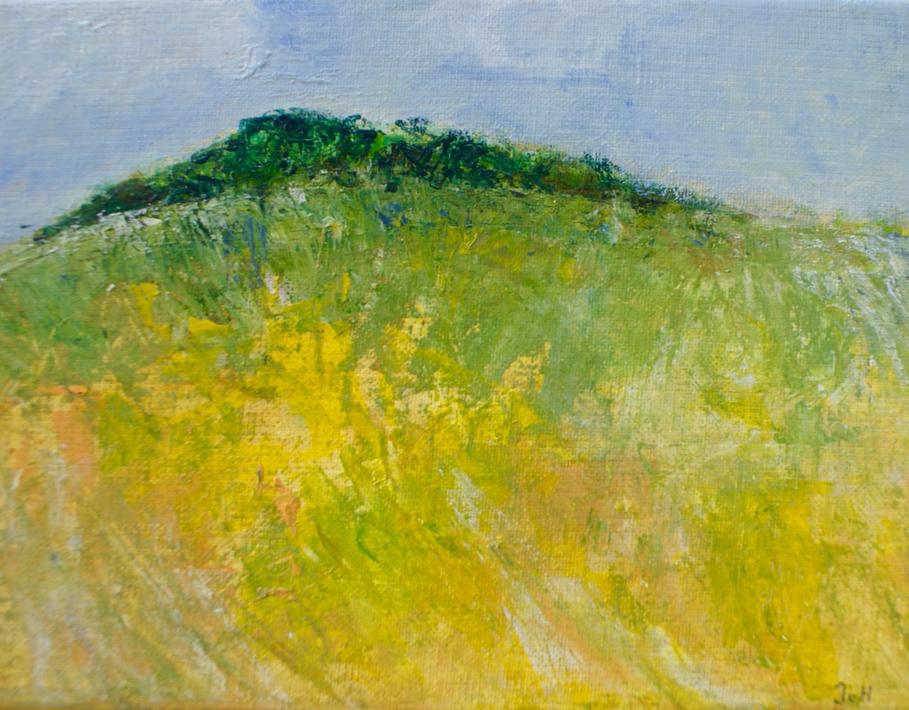 'Het landschap als vertrekpunt'. De natuur wil ik in al haar kleur, licht en donker, vormen en structuren weergeven. Mijn ontwikkeling blijft doorgaan, er is zoveel om naar te kijken en uit te drukken op het doek. Abstracter werken staat nu op de voorgrond: vlakken, kleuren, lijnen, compositie vormen tot een beeld, dat spreekt.