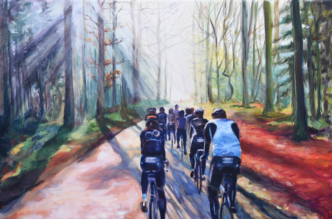 Impressie van een fietstocht in het ochtendlicht.