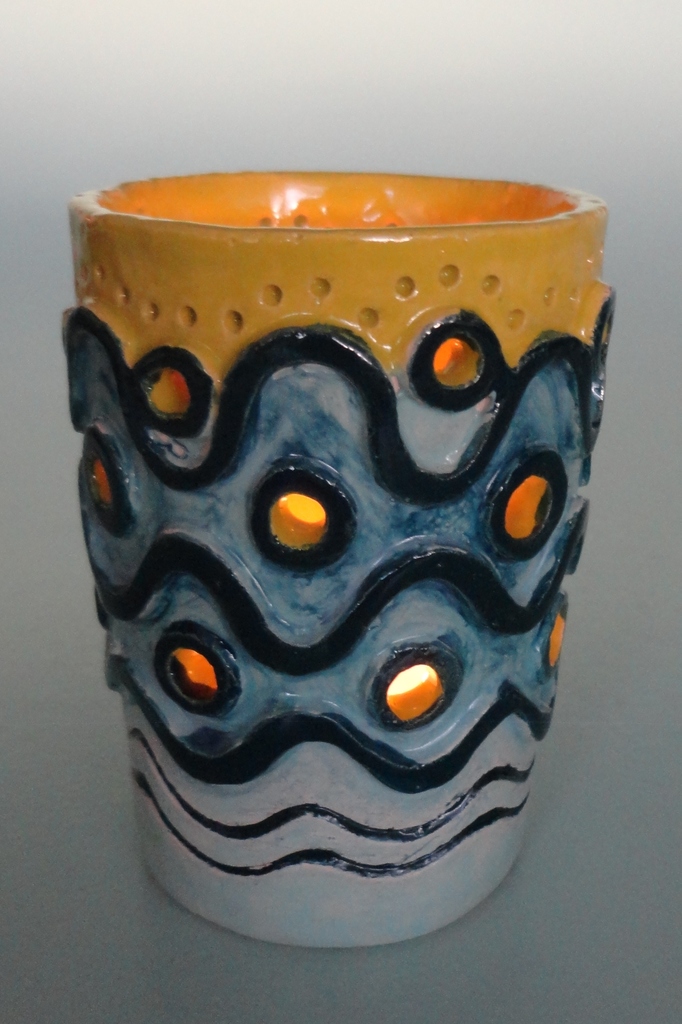 keramische waxinelichthouder, geglazuurd met patronen in relief