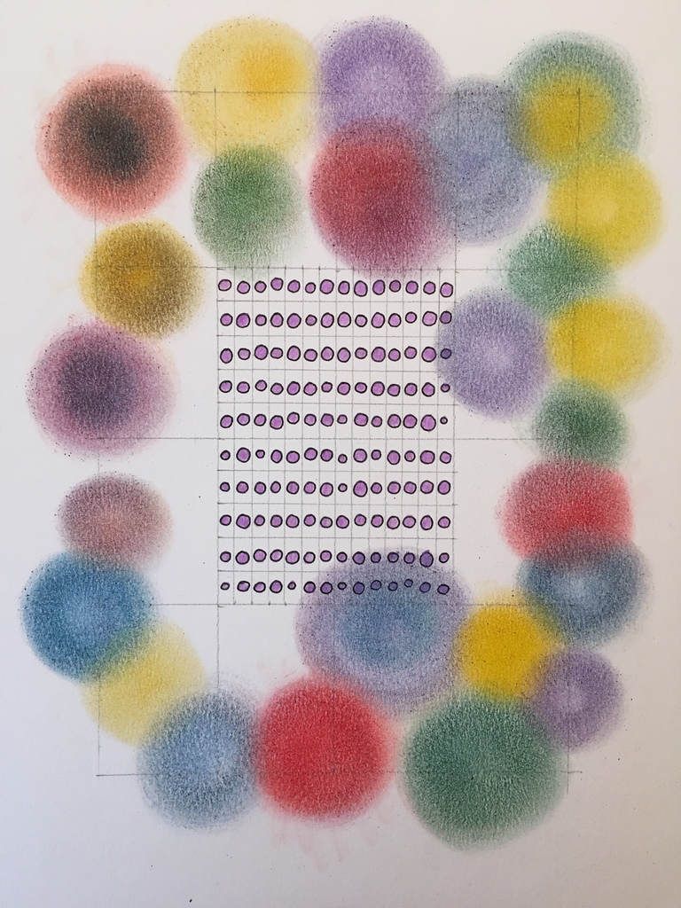 Kleuren gegroepeerd om een raster met cirkeltjes.