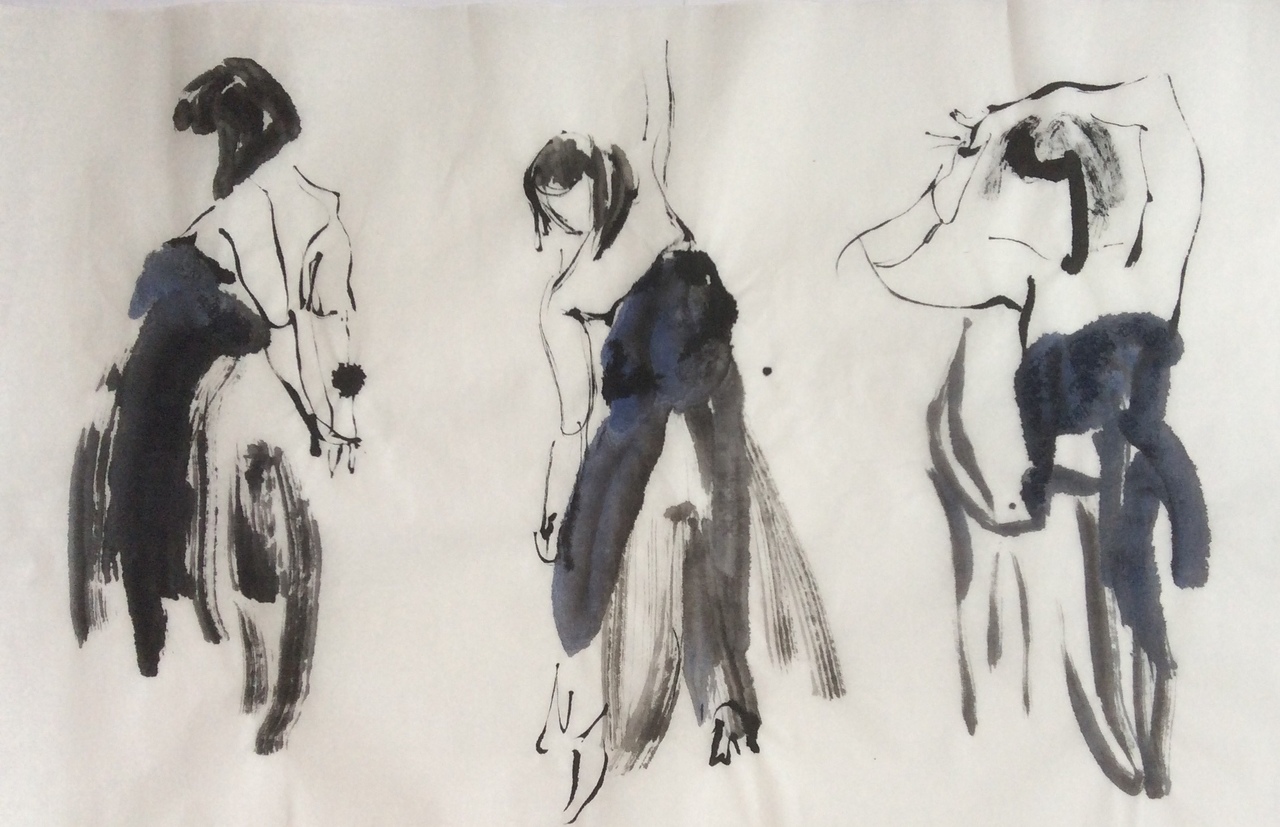 Dansend model in aquarel en inkt