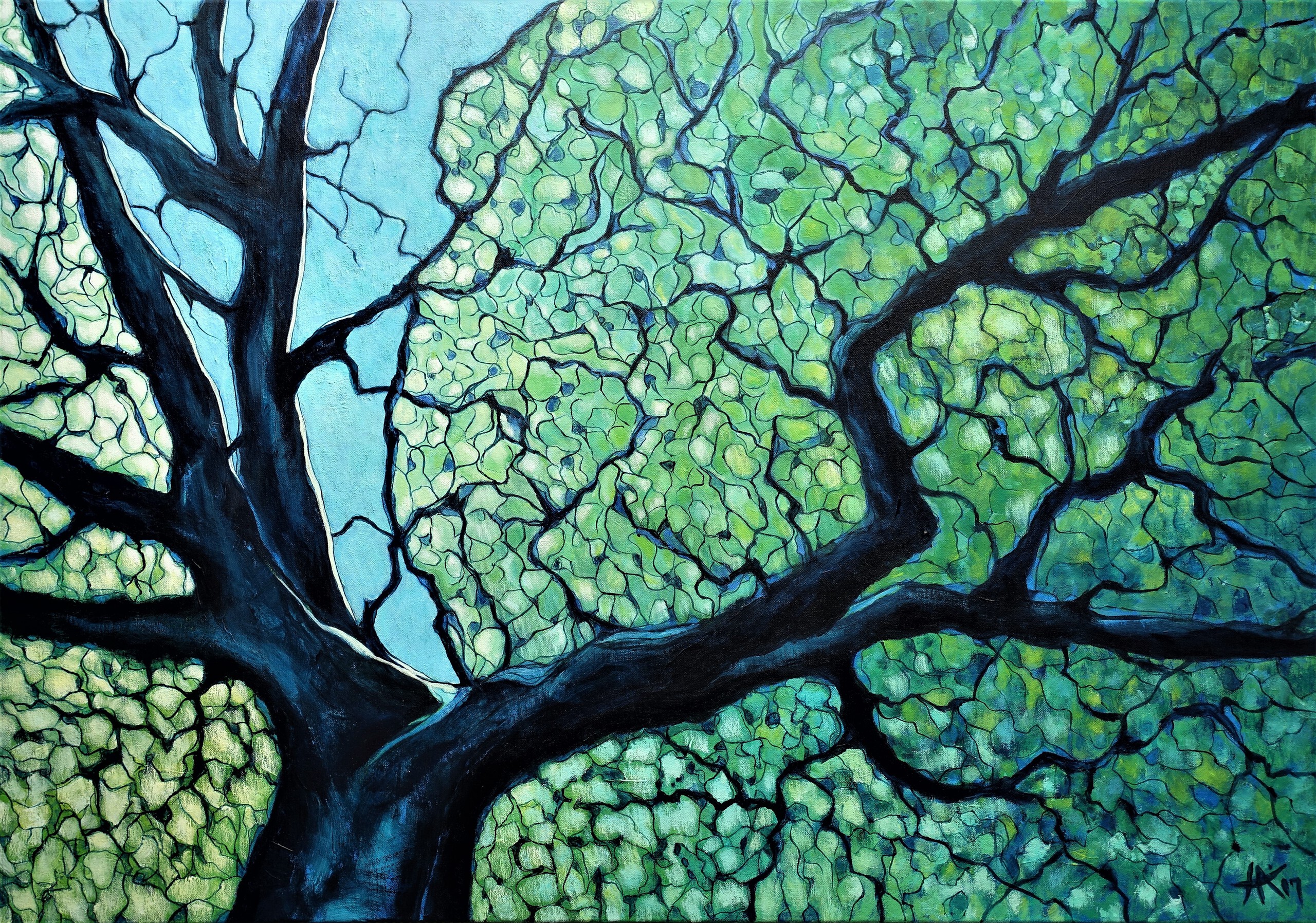 Wit Geel Blauw Groen Natuur Boom Takken Eik Impressionistisch