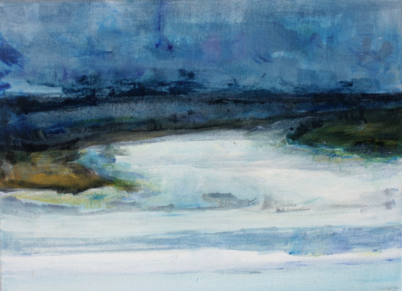 'Het landschap als vertrekpunt'. De natuur wil ik in al haar kleur, licht en donker, vormen en structuren weergeven. Mijn ontwikkeling blijft doorgaan, er is zoveel om naar te kijken en uit te drukken op het doek.
