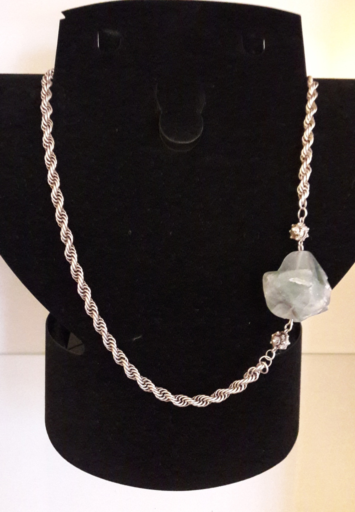 Aquamarijn ruwe steen ( 0ngeveer 3,5 cm) aan zilverenketting.