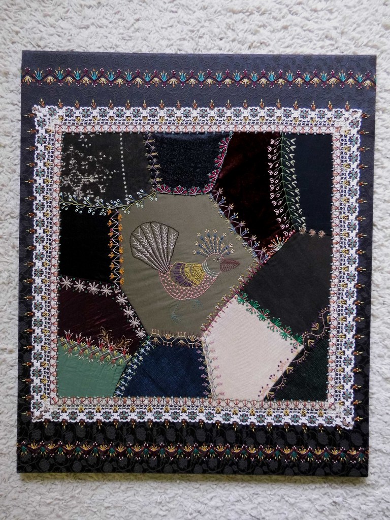Met veel plezier ontwerp en maak ik mijn crazy quilts, een vorm van patchwork met onregelmatige vormen waarbij de naden bewerkt worden met borduurwerk, eventueel aangevuld met bijvoorbeeld kant, kralen of applicaties.