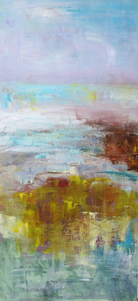 'Het landschap als vertrekpunt'. De natuur wil ik in al haar kleur, licht en donker, vormen en structuren weergeven. Mijn ontwikkeling blijft doorgaan, er is zoveel om naar te kijken en uit te drukken op het doek.