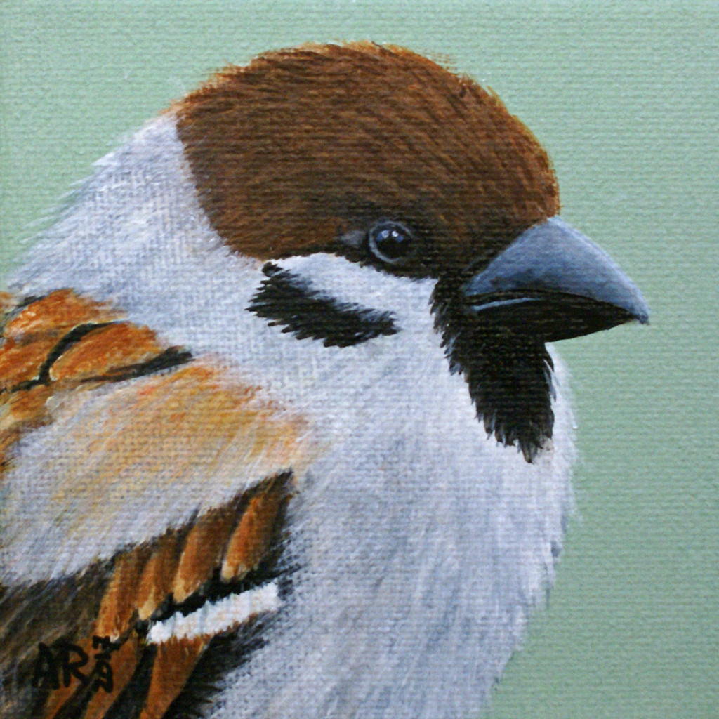 Schilderij Acryl Vogel Wildlife Dier Painting Bird Mus Sparrow Kunstkaart Vogelschilderij