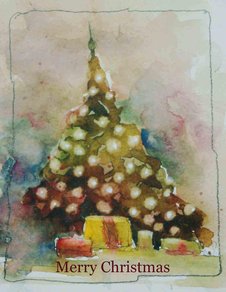 Kerstkaart gemaakt van mijn aquarel 'kerst'